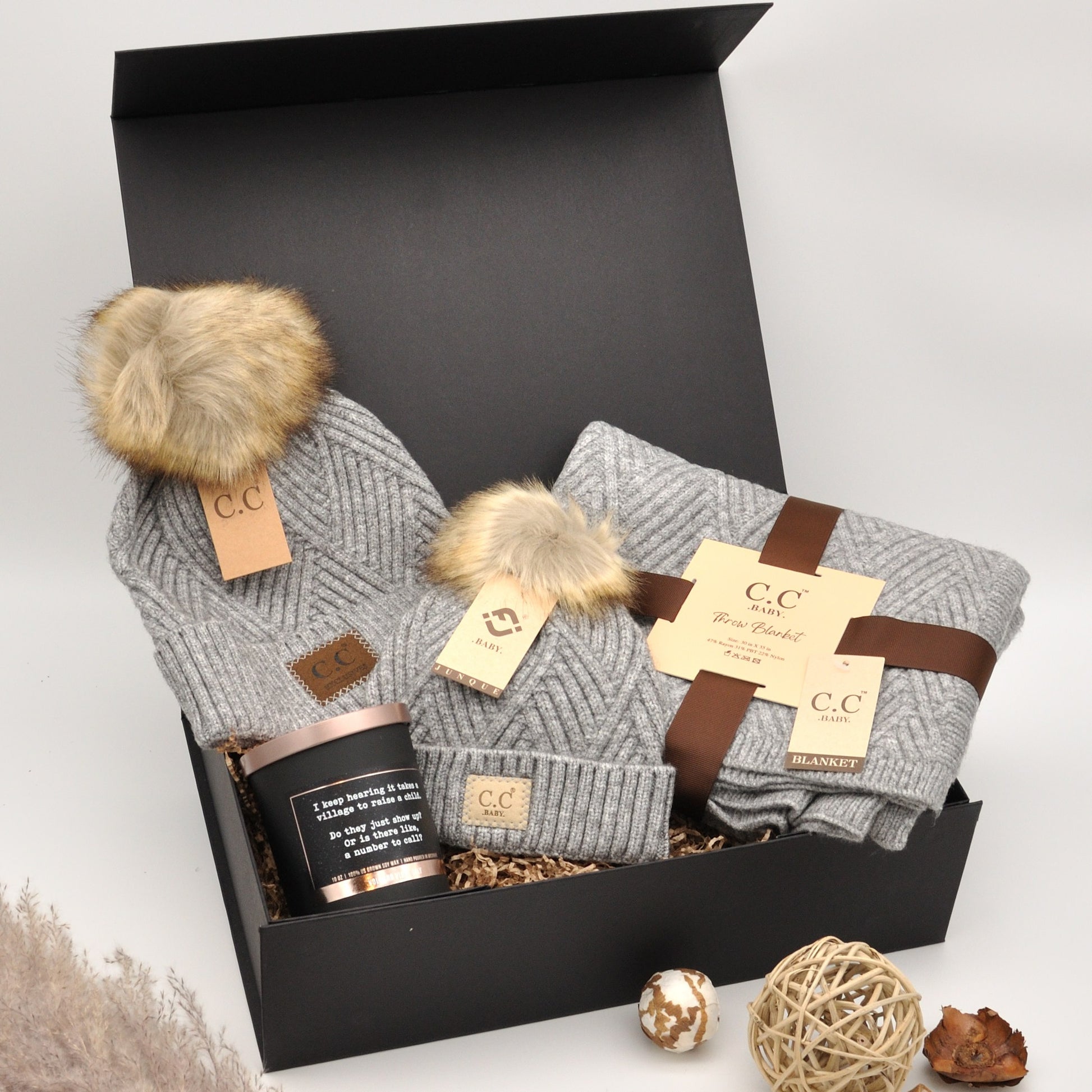 This gift box contains a beautiful collection of products so mom & baby can embrace the cold winter season in style. This matching set is not only beautiful but also very comfortable to wear due to the soft material. An extra thoughtful and heartwarming gift for mom & baby to endure the cold winter months.
