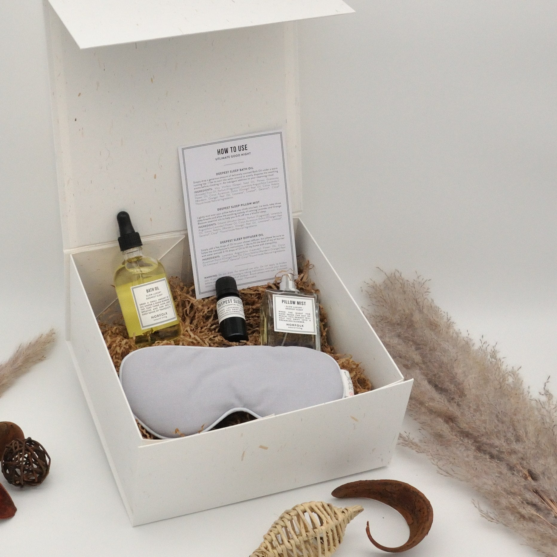 - The Ultimate Good Night - Deepest Sleep wellness set: Especially in the last trimester of pregnancy, it can sometimes be difficult to get a good night’s sleep. This wonderfully luxurious trio is designed to help you relax and fall into a peaceful sleep more easily. The set contains Bath Oil 100 ml, Diffuser Oil 10 ml, Pillow Mist 50 ml.
